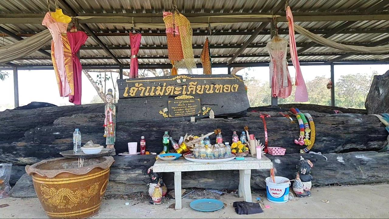 ทั้งนี้ จากการสังเกตพื้นที่บริเวณรอบหนองเล็งทราย อำเภอแม่ใจ จังหวัดพะเยา พบตะเคียนกว่า 10 ท่อน ที่ชาวบ้านนำมาเก็บไว้ภายในศาลเจ้าแม่ตะเคียน เพื่อให้ชาวบ้านและบรรดาคอหวยมาขอโชคลาภ ซึ่งภายในศาลได้มีชุดไทยที่แขวนห้อย และเก็บไว้ภายในตู้จนเต็มไปหมด