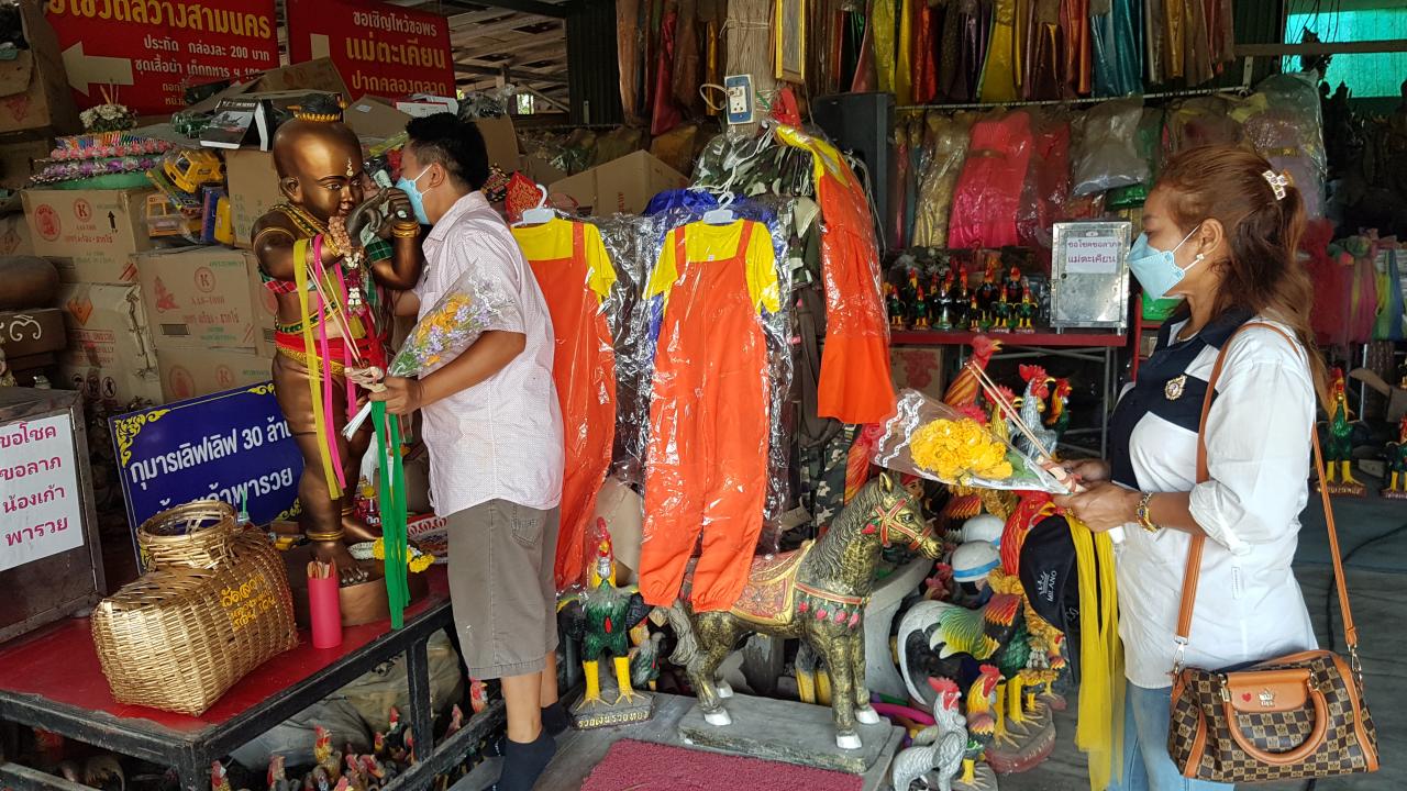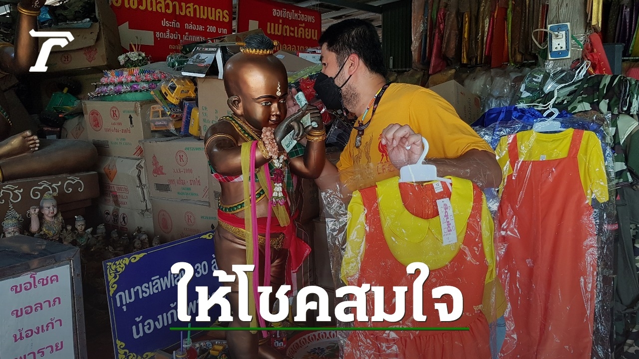คอหวยนำชุดโกโกวา แก้บน "กุมารน้องเก้า" วัดสว่างอารมณ์ หลังให้โชคสมใจ พร้อมขอ "เลขเด็ด" หวังดวงเฮงอีกงวด