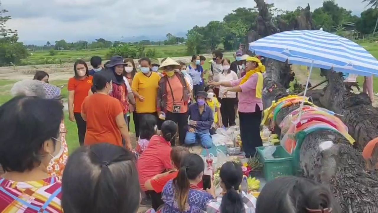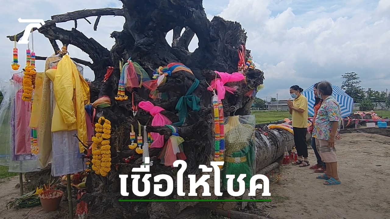 คอหวยแห่แก้บน "ต้นตะเคียน" ลักษณะโคนต้นคล้ายเศียรพญานาค พร้อมส่อง "เลขเด็ด" ปลายประทัด หลังให้โชคมาแล้ว 2 งวด