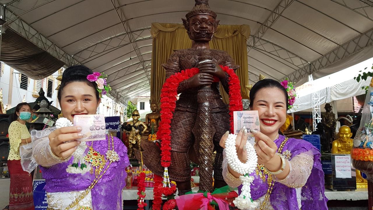 ได้งานตามคำขอ สาวมารำแก้บนถวาย "ท้าวเวสสุวรรณ" วัดสว่างอารมณ์ หลังขอพรแล้วสมหวัง ไม่ลืมจุดประทัดขอ "เลขเด็ดงวดนี้" กลับไปเสี่ยงโชคงวด 16/6/65