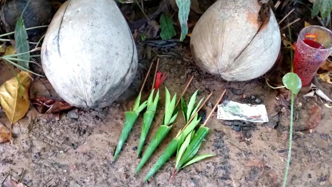 ชาวบ้านที่ จ.สุรินทร์ ทำพิธีตามความเชื่อ ขอโชคจาก "มะพร้าวเผือก" ใบสีขาว ไม่พลาดได้ "เลขเด็ด"