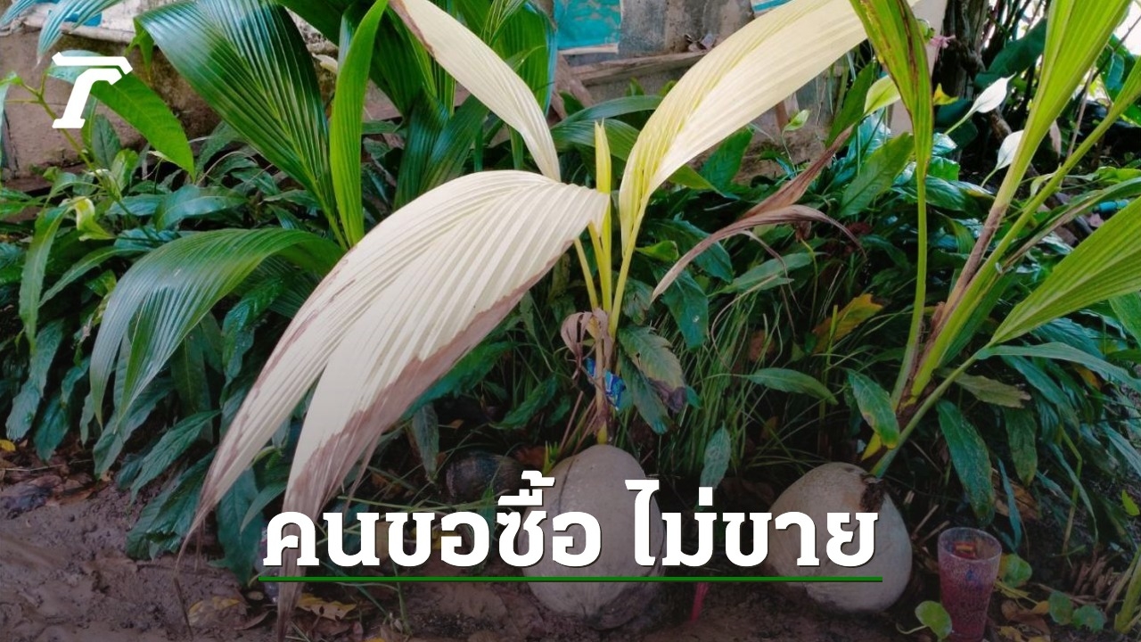 ด้าน คุณตาหมู เจ้าของบ้านกล่าวว่า มะพร้าวลูกที่เกิดมาเป็นมะพร้าวเผือกต้นนี้ นับเป็นต้นที่ 2 โดยต้นแรกตนได้นำไปปลูกไว้ที่ทุ่งนา แต่ก็ไม่รอด ค่อยๆ เหี่ยวแห้งตายไป จึงได้เอาลูกใหม่มาเพาะอีก ก็ปรากฏว่าออกมาเป็นมะพร้าวเผือก แต่ต้นนี้อายุปีกว่าแล้ว ตนไม่เคยบอกใคร มีคนเคยมาขอซื้อ แต่ไม่ขาย เพราะเห็นว่าเป็นของแปลก และหายาก จึงอยากเก็บไว้ดู ส่วนชาวบ้านที่ทราบข่าว ก็นำดอกไม้ ธูปเทียนมาขอโชคลาภ เพราะเชื่อว่าเป็นไม้มงคล.