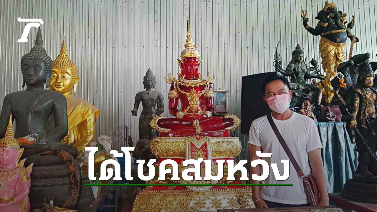 เจ้าของโรงหล่อ ถวายพระพุทธรูป "พระแก้วมรกตสีแดง" แก้บน วัดสว่างอารมณ์ แถมได้ "เลขเด็ดงวดนี้" จากทะเบียนรถกลับไปลุ้นโชค 16/7/65