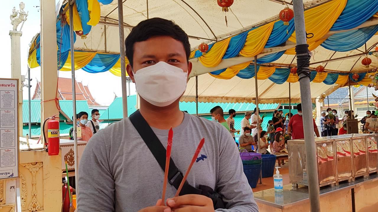 คุณครูวัย 28 เดินทางมากราบไหว้ขอพร "หลวงพ่อสมหวัง" วัดกลางบางพระ ไม่ลืมเขย่าเซียมซีขอ "เลขเด็ดงวดนี้" กลับไปลุ้นโชคงวด 16/7/65