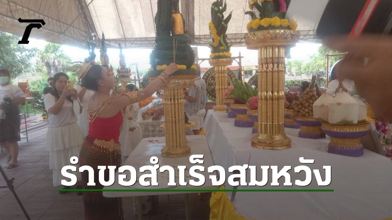 "ลูลู่ อาร์สยาม" รำถวายพ่อปู่แม่ย่า ที่ลานบวงสรวงหน้าเกาะวังนาคินทร์ คำชะโนด นักเสี่ยงโชคไม่พลาด ส่องน้ำตาเทียนในขันน้ำมนต์ บริเวณโต๊ะพิธีบวงสรวง ได้ "เลขเด็ด" เสี่ยงโชค งวด 1/8/65