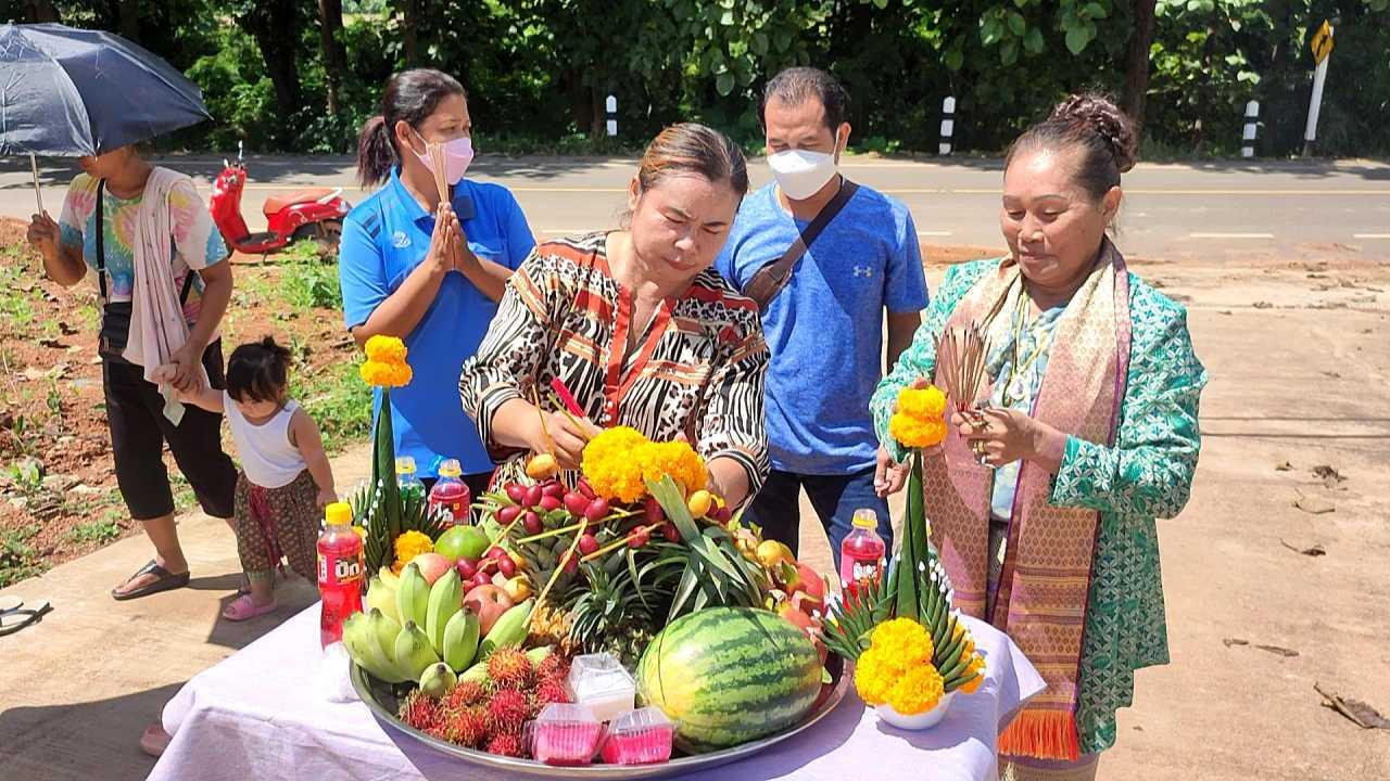 สาวถูกรางวัลที่ 3 นำผลไม้ เครื่องเซ่นไหว้ มาแก้บนองค์พญานาค ยาว 75 เมตร ทางเข้าวัดที่เพชรบูรณ์ องค์ลงร่ายรำขณะทำพิธี ไม่พลาดส่อง "เลขเด็ด" เสี่ยงดวงงวด 1 ส.ค.65