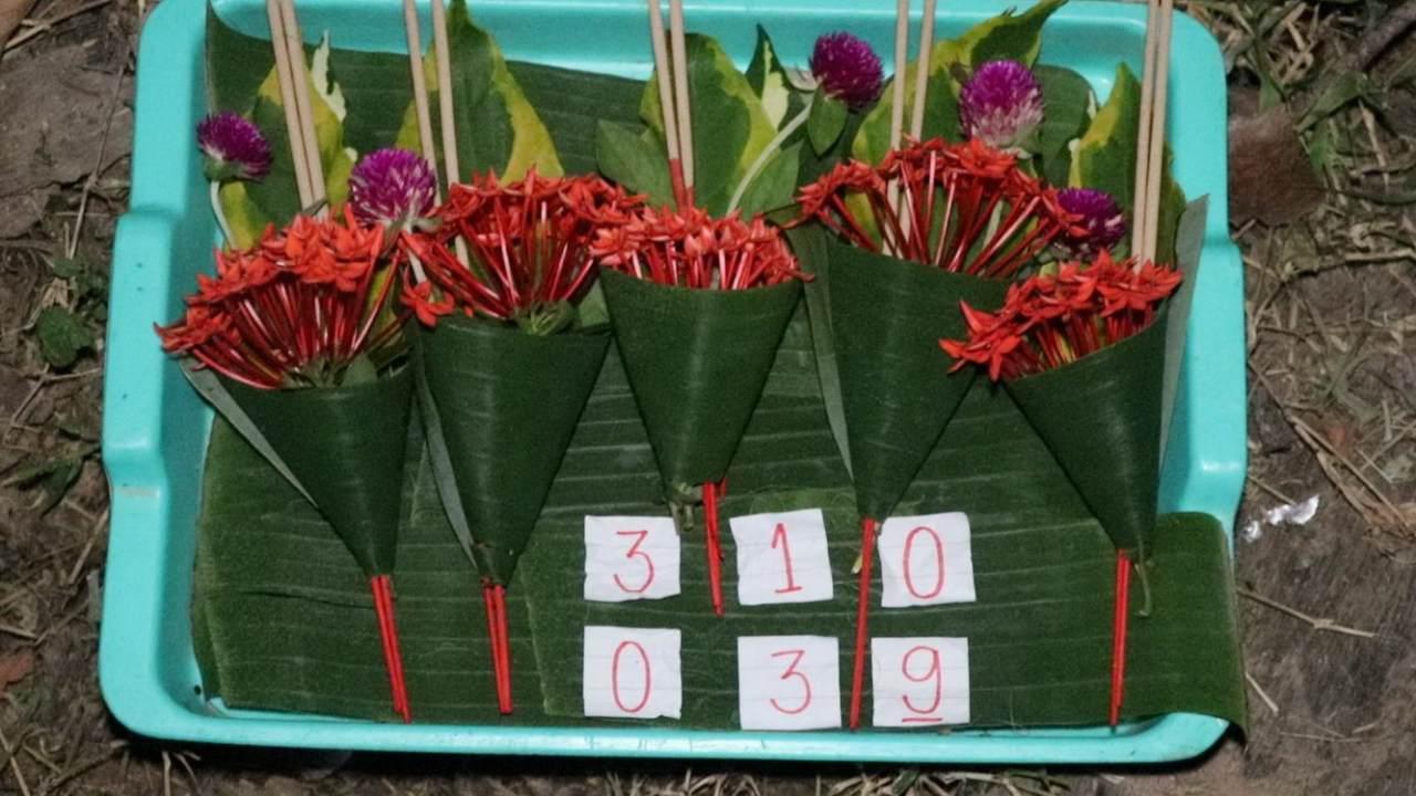ทั้งนี้ เพื่อให้พญาบึ้งนำกระดาษขึ้นมาวางไว้ที่บริเวณปากรู โดยครั้งนี้ได้มาทำการขอเลขเสี่ยงทายในตอนเช้า พบว่าพญาบึ้งได้คีบตัวเลขขึ้นมาไว้ที่ปากรูในช่วงค่ำ ชุดแรกจำนวน 3 ใบ คือตัวเลข 310 ส่วนครั้งที่ 2 อีกจำนวน 3 ใบ เปิดออกมาดูพบเป็นตัวเลข 039 งานนี้ถือเป็นความเชื่อของแต่ละบุคคล.