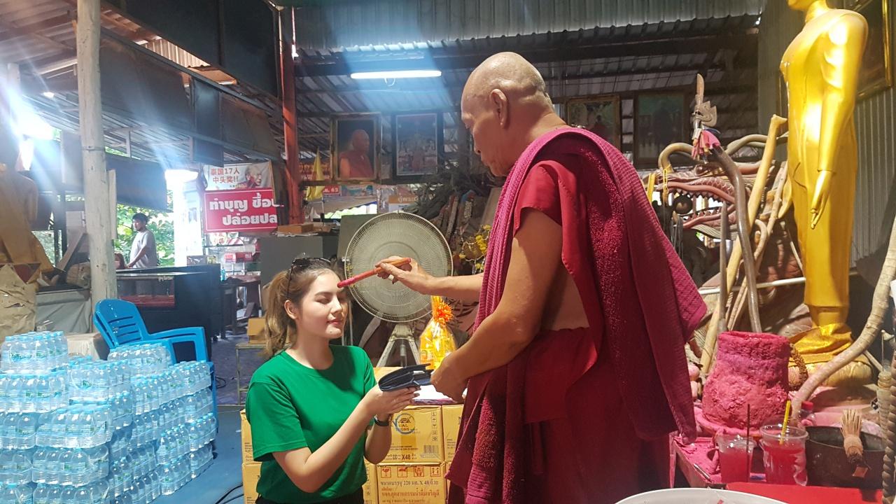 อย่างไรก็ตาม ก่อนที่นักแสดงสาวจะเดินทางกลับ หลวงพ่อแป๊ะ ยังได้มอบวัตถุมงคลหายาก ถั่ว 5 ข้อ ของวัดสว่างอารมณ์ ซึ่งมีชื่อเสียงในเรื่องเมตตา ค้าขาย ให้โชคลาภ ป้องกันภยันตรายต่างๆ หากมีไว้จะเจริญรุ่งเรือง ให้พกไว้เพื่อความเป็นสิริมงคล ก่อนจะได้เจิมหน้าผาก และซื้อเลขเซียมซี 21 และ 2 ที่เขย่าได้ไปซื้อลอตเตอรี่ลุ้นโชคในงวดวันที่ 16/9/65 นี้.