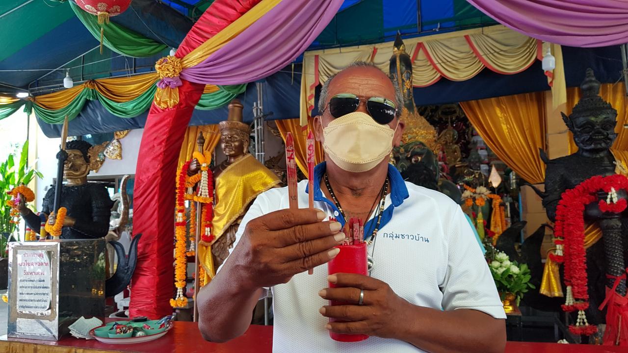 อย่างไรก็ตาม ก่อนเดินทางกลับได้เขย่าเซียมซีหล่นมาจำนวน 2 ไม้เป็นเลข 79 ซึ่งถือว่าเป็นเลขเด่นในรอบนี้ และตรงกับเลขในใจที่อยากได้ ส่วนหัวหมูที่นำมาแก้บนจำนวน 9 หัว ตนเองจะมอบถวายวัดให้ไปทั้งหมด เพื่อให้หลวงพ่อแป๊ะนำเข้าโรงทานและปรุงเป็นอาหารแจกจ่ายให้กับสาธุชนที่มาวัดสว่างอารมณ์ได้ทานกันอย่างทั่วถึง.