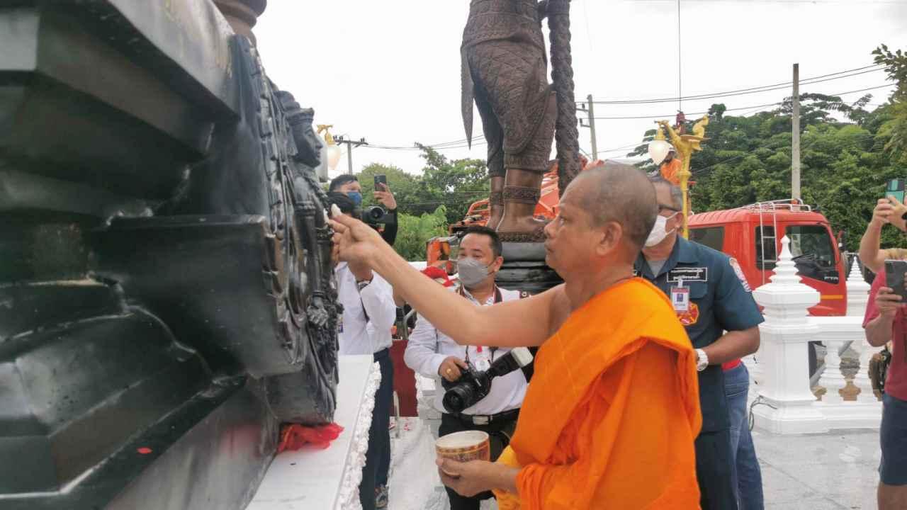 ทั้งนี้ ก่อนที่จะนำขึ้นประดิษฐาน ทางวัดจุฬามณี ต้องนำองค์ท้าวเวสสุวรรณโณทั้ง 3 ขนาดใส่รถบรรทุกและรถเครน โดยทั้ง 3 องค์เป็นเทวรูปท้าวเวสสุวรรณ จตุมหาราชิกา ขนาดความสูงร่วม 6 เมตร ท้าวเวสสุวรรณปางเทพบุตร ขนาดสูง 3.5 เมตร และท้าวกุเวรเทพบุตร ขนาดความสูง 3.5 เมตร โดยมีรถเครนยกและรถกระเช้าบรรทุกมา