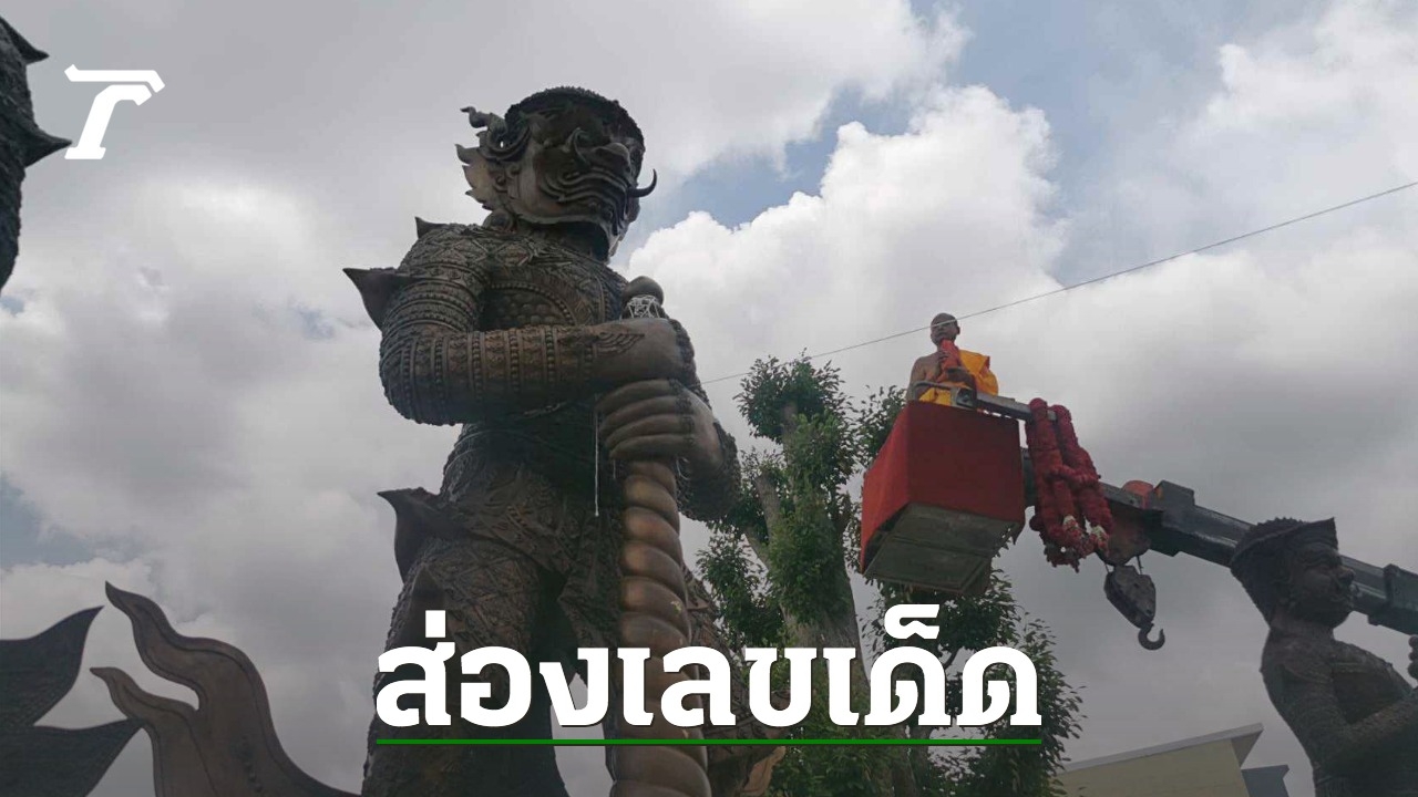 พิธีอัญเชิญ "ท้าวเวสสุวรรณ 3 องค์" มายังมูลนิธิสรรพราเชนทร์ ด้านคอหวยไม่พลาดส่อง "เลขเด็ด" หางประทัด หวังนำไปลุ้นโชคงวดนี้