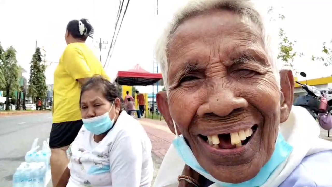 แม้ว่าสภาพอากาศวันนี้ร้อนจัด แต่ก็ไม่เป็นอุปสรรคที่ชาวนครศรีธรรมราช จะเดินทางมาจับจองพื้นที่ริมถนน เพื่อรอรับหลวงตาบุญชื่น หนึ่งในนั้นคือ ยายเมียด โมรา อายุ 84 ปี ที่เดินทางมากับลูกหลาน เพื่อนำพวงมาลัยดอกดาวเรือง และน้ำดื่มมารอถวาย