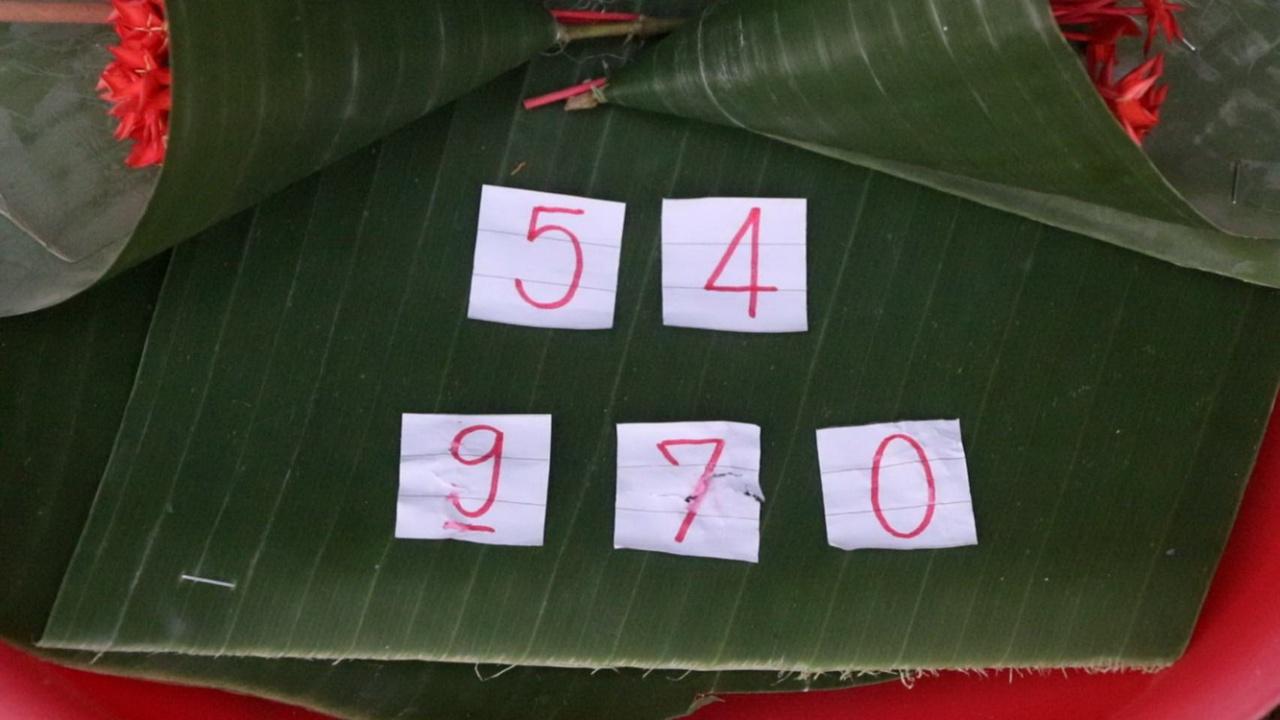 ครั้งนี้รอลุ้นไม่นาน พญาบึ้งได้นำกระดาษตัวเลขออกมาวางไว้ที่บริเวณปากรู รอบแรกมีจำนวน 2 ใบ เมื่อเปิดดูพบเป็นตัวเลข 54 และต่อมาได้คีบออกมาวางไว้ที่ปากรูครั้งละใบ จำนวน 3 ครั้ง เปิดออกดูพบเป็นตัวเลข 970 เมื่อเห็นดังนั้น ชาวบ้านและบรรดานักเสี่ยงโชคก็รีบนำมือถือขึ้นมาถ่าย เพื่อไปซื้อลอตเตอรี่ไปเสี่ยงดวงต่อไปในงวดวันที่ 16/11/65 นี้.