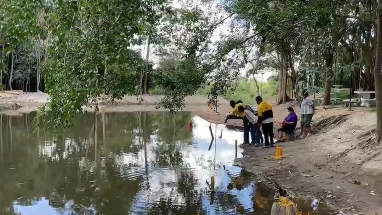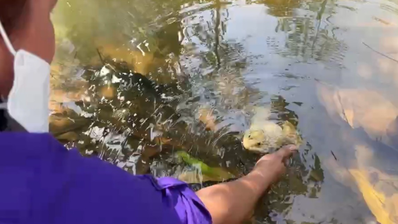 สอบถามนายเริงฤทธิ์ รามบูรพา อายุ 49 ปี ผู้ดูแลวัดหนองกรับ ได้พาไปยังจุดที่ชาวบ้านบอกว่าพบกบสีทอง ซึ่งอยู่หลังวัด ชาวบ้านเรียกว่า คลองหลังวัดหนองกรับ ซึ่งเมื่อก่อนด้านหลังเป็นป่ารกร้าง ไม่มีการใช้งาน ภายหลังทางวัดได้มาตัดหญ้าทำความสะอาด และบูรณะให้เป็นที่ปล่อยสัตว์น้ำ ติดป้ายเป็นเขตอภัยทานของวัด ได้ 2 เดือนแล้ว
