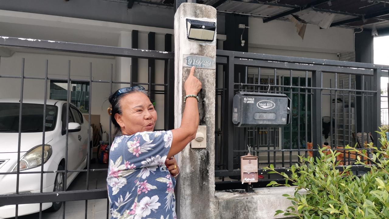 นางอมรรัตน์ หาดสมบัติ อายุ 65 ปี เจ้าของบ้าน ได้เล่าว่า เห็นตัวเงินตัวทองตัวดังกล่าวนี้อยู่ที่รั้วหน้าบ้าน พอมันเห็นคนมันก็รีบเข้าไปหลบอยู่ใต้รถยนต์เก๋งที่จอดอยู่ในบ้าน ตนจึงให้ รปภ.ของหมู่บ้าน 2 คนมาช่วยกันจับ พอจับได้ก็มีเพื่อนบ้านมามุงดูกัน และต่างคนต่างก็เห็นลายที่หลังตัวเงินตัวทองเป็นเลขต่างๆ เช่น 214, 219 ซึ่งตรงกับเลขบ้านที่ตัวเงินตัวทองเข้าคือบ้านเลขที่ 919/29 บางคนก็เห็นเป็นเลข 60 ซึ่งชาวบ้านที่เป็นผู้หญิงใช้มือวัดความยาวได้ 9 คืบ
