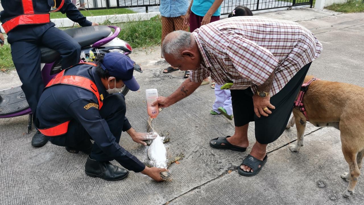 ขณะที่ นายเชียง ประเสริฐแก้ว อายุ 68 ปี ซึ่งบ้านอยู่ใกล้ๆ กันได้ใช้แป้งโรยที่หลังตัวเงินตัวทองและใช้ดอกไม้มาทำพิธีขอเลขเด็ดจากตัวเงินตัวทอง ซึ่งก็ตีเป็นตัวเลขตามที่ตาตัวเองจะเห็น จากนั้นรปภ.ของหมู่บ้านก็นำตัวเงินตัวทองไปปล่อยที่ป่า ซึ่งมีลำคลองหลังหมู่บ้านซึ่งพอ รปภ.ปล่อยให้เป็นอิสระ เจ้าตัวเงินตัวทองก็รีบลงไปในน้ำทันที.