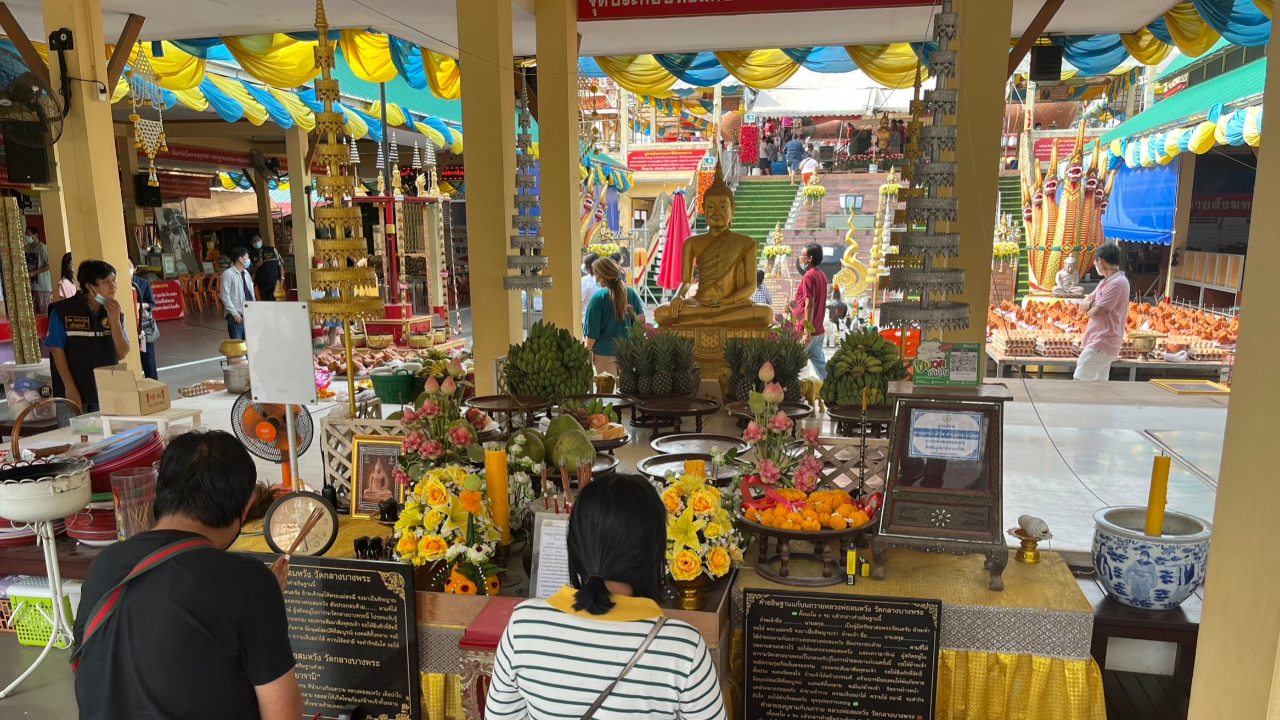วันที่ 26 พฤศจิกายน 2565 ผู้สื่อข่าวรายงาน ที่วัดกลางบางพระ ต.บางพระ อ.นครชัยศรี จ.นครปฐม ซึ่งเป็นช่วงใกล้วันหวยออก และตรงกับวันเสาร์ ทำให้บรรยากาศในวัดคึกคัก มีสาธุชน และบรรดานักเสี่ยงโชค เดินทางมากราบไหว้ขอพรหลวงพ่อสมหวัง พระพุทธรูปศักดิ์สิทธิ์ ปางมารวิชัย ที่มีความสูงถึง 30 เมตร อย่างไม่ขาดสาย เนื่องจากเชื่อกันว่า หากได้มากราบไหว้ขอพร จะสมหวังตามชื่อขององค์หลวงพ่อ ทำให้ในทุกวันมีผู้นำข้าวสาร อาหารแห้ง หัวหมู ผลไม้ มาแก้บนทุกวัน นอกจากนี้ยังมีคนที่ขายที่ดินได้เดินทางมาแก้บนอย่างต่อเนื่องอีกด้วย