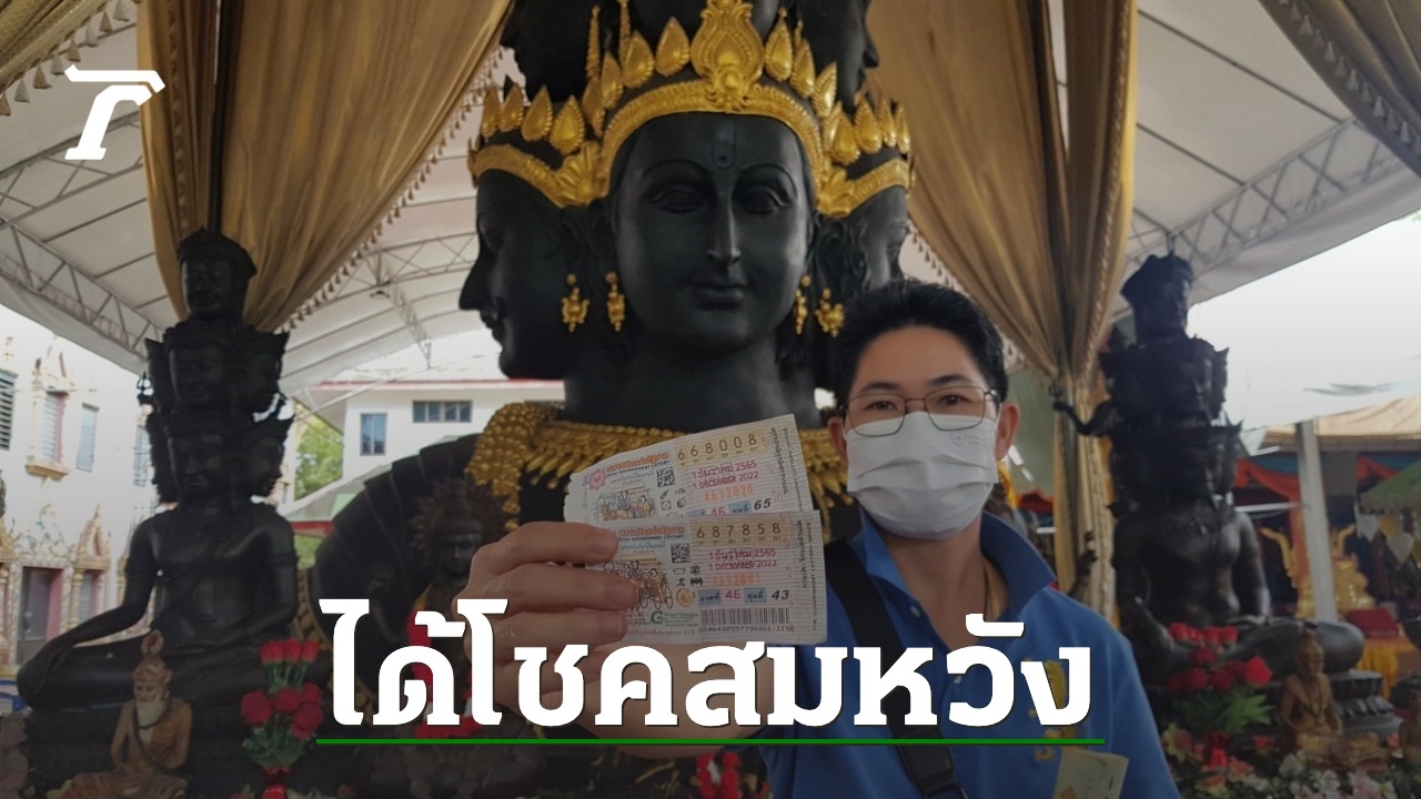 คนดวงเฮงถูกลอตเตอรี่ รางวัลที่ 5 และ เลขท้าย 2 ตัว หลังมาขอโชค "พระตรีมูรติ" วัดสว่างอารมณ์ แถมไม่ลืมขอ "เลขเด็ดงวดนี้" ไปลุ้น 16/12/65