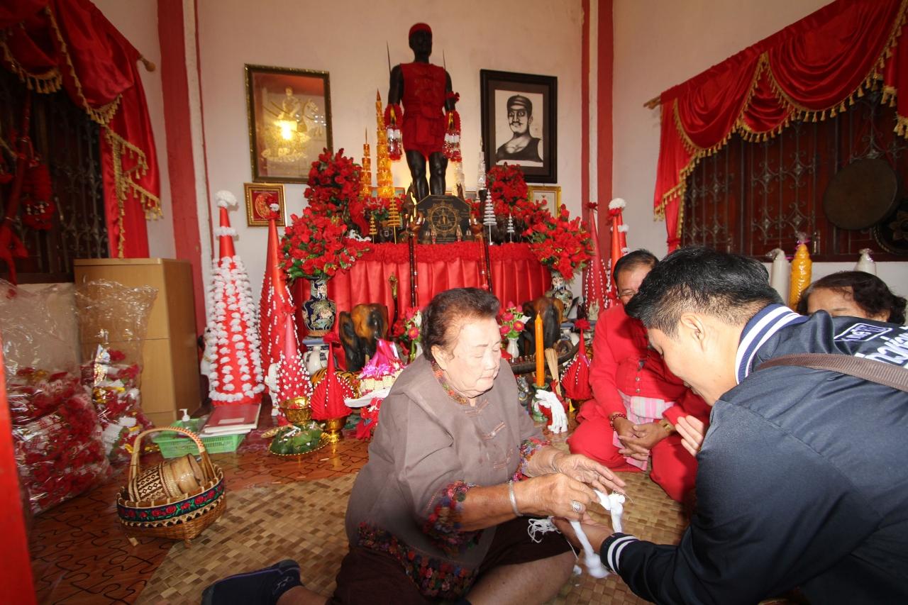 ภายหลังจัดเครื่องสักการบูชาถวายเจ้าปู่ถลา กลายเป็นที่ฮือฮา หลังจากเจ้าปู่ถลา ได้ประทับร่างทรง นางสุเพ็ญศรี ยิ่งผล อายุ 79 ปี ที่ชนเผ่าผู้ไทยเรณูนคร เรียกว่า เจ้าจ้ำ หรือร่างทรงปู่ถลา ทำให้มีอาการสั่น นั่งชันเข่าเหมือนคนแก่ และพูดคุยสื่อสารกับชาวบ้าน ระบุว่า เจ้าปู่ถลามารับเครื่องเซ่นไหว้ โดยเฉพาะก้อยดิบ ลาบเลือดวัวสดๆ ซดกินจนเลือดหมดถ้วย ดูดบุหรี่พร้อมกันครั้งละ 2 มวน และยกขวดเหล้าขาวดื่มเป็นขวด พร้อมอวยพรให้ลูกหลาน มีความร่มเย็นเป็นสุข เจริญรุ่งเรือง โดยทางลูกหลานชาวผู้ไทย ได้ขอเลขมงคล ในงวดนี้ เจ้าปู่ถลา ได้ให้เลขมงคล 84 ต่างพากันไปเสี่ยงโชคซื้อลอตเตอรี่ จนเกลี้ยงแผง