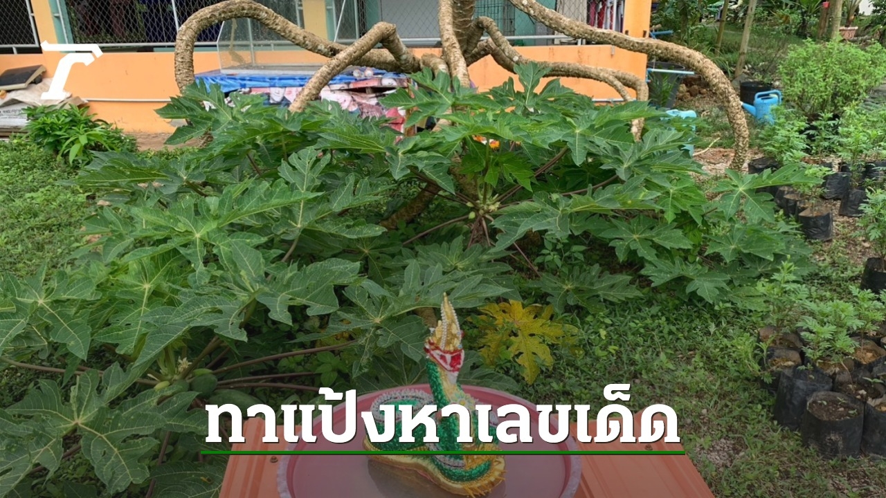 ชาวบ้านขอโชคต้นมะละกอแปลก หักกลางลำต้น แต่ยังแตกลำต้นใหม่อีก 8 กิ่ง แถมลูกดก เจ้าของบ้านเชื่อเป็นปู่พญานาค หลังฝันเห็นชายแก่นุ่งชุดขาวมาขออยู่ด้วย แย้ม "เลขเด็ด" หลังถูกหวยเกือบทุกงวด
