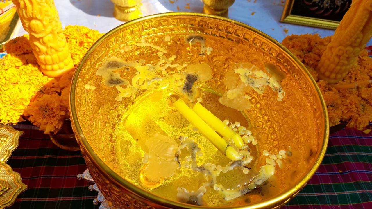 แม่หมอคำชะโนด ทำพิธีบวงสรวงพ่อปู่แม่ย่าวังนาคินทร์ รำถวายขอพร ขอโชคลาภช่วงใกล้ถึงวันขึ้นปีใหม่ คอหวยไม่พลาดส่อง "เลขเด็ด" ขันน้ำมนต์