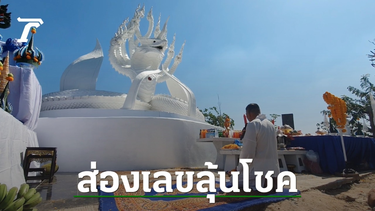 ชาวโคราชแห่ร่วมพิธีบวงสรวงองค์ปู่พญานาคเผือก 11 เศียร บูชาท้าวเวสสุวรรณ ไม่พลาดส่อง "เลขเด็ด" เต่ายักษ์เสี่ยงโชควันหวยออก