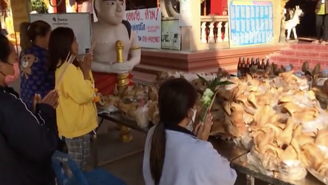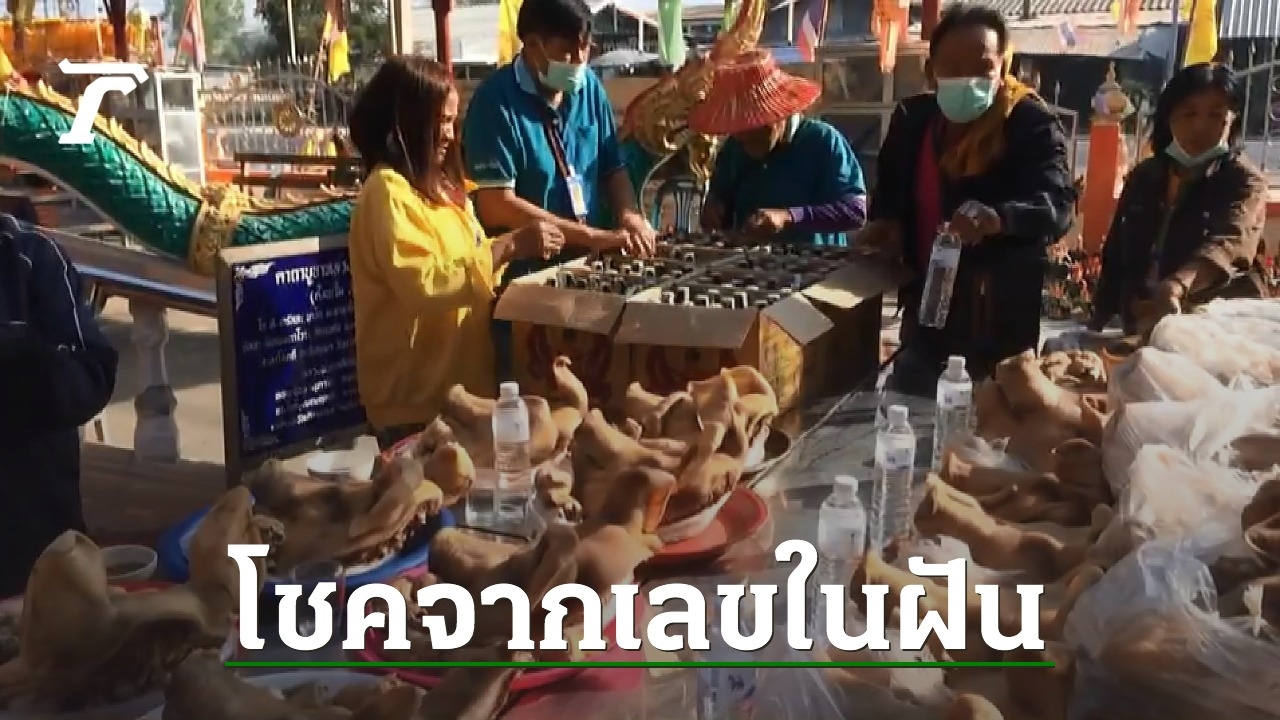สาวเจ้าของร้านอาหาร ขนหัวหมู 100 หัว เหล้าขาว 100 ขวด แก้บน "หลวงพ่อเคลือบ" วาจาศักดิ์สิทธิ์ ให้โชคกว่า 2 ล้านบาท ขณะที่คอหวย ส่องทะเบียนรถ นำไปเสี่ยงโชคงวด 1 ก.พ. 66