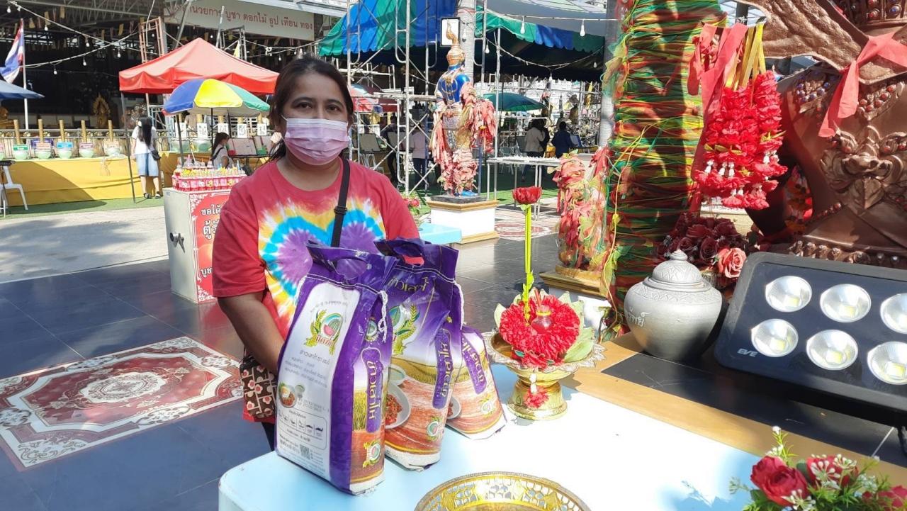 ขณะที่ นางสาวพุทธรักษา ที่รัก พร้อมครอบครัว นำข้าวสาร 3 กระสอบ, น้ำดื่ม 2 แพ็ก มาแก้บนท้าวเวสสุวรรณ หลังได้โชคก้อนใหญ่จากหวยรัฐและต่างประเทศ ได้เงิน 40,000 กว่า ในงวดที่ผ่านมา นางสาวพุทธรักษา กล่าวว่า ตนเองมาขอพรเรื่องโชคลาภจากท้าวเวสสุวรรณมาหลายครั้งแล้ว และก็ได้เกือบทุกงวด วันนี้จึงเดินทางมาแก้บนดังกล่าว และยังได้เลข 318 จากธูปเสี่ยงทายกลับไปเสี่ยงโชคอีกครั้ง