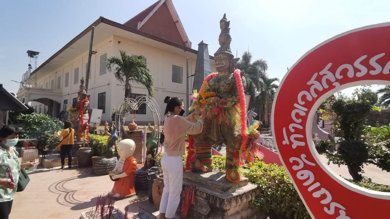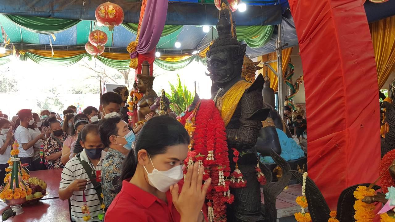 ชาวบ้านเดินทางมาขอโชค "ท้าวเวสสุวรรณโณ" วัดเถรพลาย ไม่ลืมจุดธูปมงคลขอ "เลขเด็ดงวดนี้" ปรากฏว่าได้หมายเลข 290 ซึ่งจะนำไปซื้อสลากกินแบ่งรัฐบาลลุ้นโชคในงวด 1/2/66