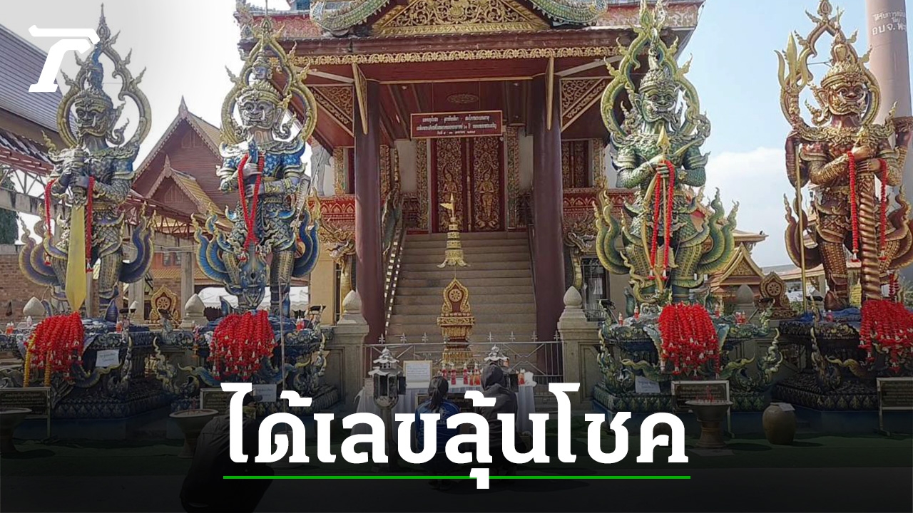 คอหวยเดินทางมาขอ "เลขเด็ดงวดนี้" จาก "ท้าวเวสสุวรรณ 4 ตน 4 ปาง" วัดบุญเกิด เพื่อนำกลับไปซื้อ "สลากกินแบ่ง" เสี่ยงโชคงวด 1/2/66