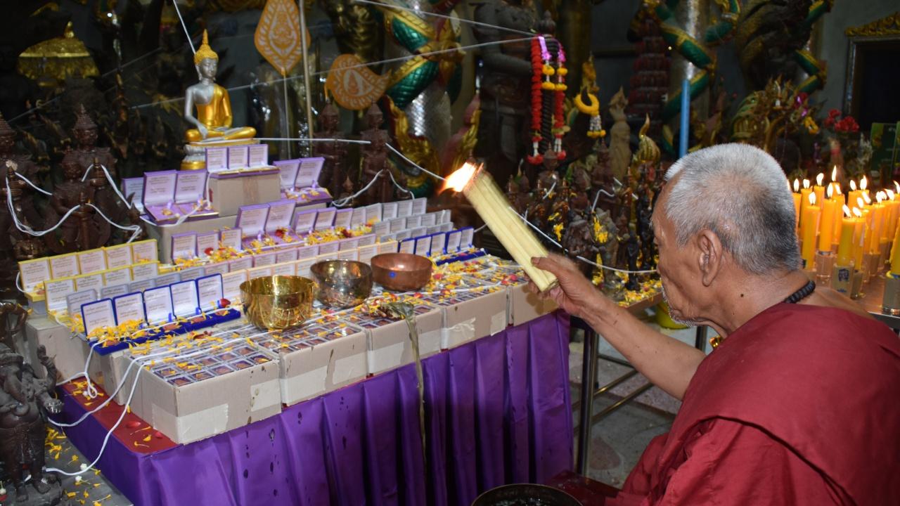 โดยมีพระครูยติธรรมานุยุต หรือหลวงพ่อแป๊ะ เจ้าอาวาสเกจิดัง ประกอบพิธีจุดเทียนเสริมดวงบูชาดวงชะตาให้ ซึ่งถือเป็นหนึ่งในพิธีกรรมในสมัยโบราณ ที่ปัจจุบันหายากและไม่ค่อยมีวัดใดประกอบพิธีนี้ เพื่อเป็นการเปิดดวง เปิดรับความเฮงโชคลาภ ทำให้แสงเทียนส่องสว่างไปทั่วบริเวณ