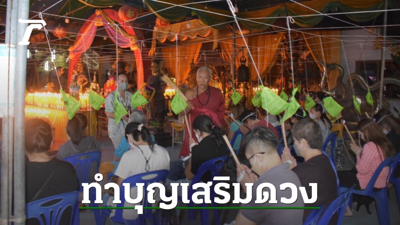 สาธุชนแห่ร่วมพิธีจุดเทียน เสริมดวงชะตาในวันมงคล ที่วัดสว่างอารมณ์ ด้านคอหวยไม่พลาดส่อง "เลขเด็ด" ลุ้นรวยงวด 16/2/66