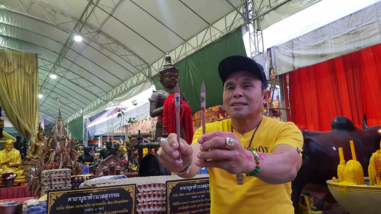 ผู้สื่อข่าวรายงานว่า หลังจากที่ชาวบ้านทราบว่า อ๊อด โฟร์เอส มาร่วมงานที่วัดด้วย ก็ต่างมารุมล้อมขอถ่ายรูป และขอให้ช่วยเสี่ยงเซียมซีเลขเด็ดให้หน่อย อ๊อด ก็ไม่ขัด หยิบเซียมซีมาเสี่ยง ได้หมายเลข 24 จึงโชว์ให้แฟนเพลงดู พร้อมยกมือไหว้ท้าวเวสฯ หากได้โชคจะนำคณะชุดใหญ่มาแสดงให้ชาวบ้านได้สนุกสนานอีก