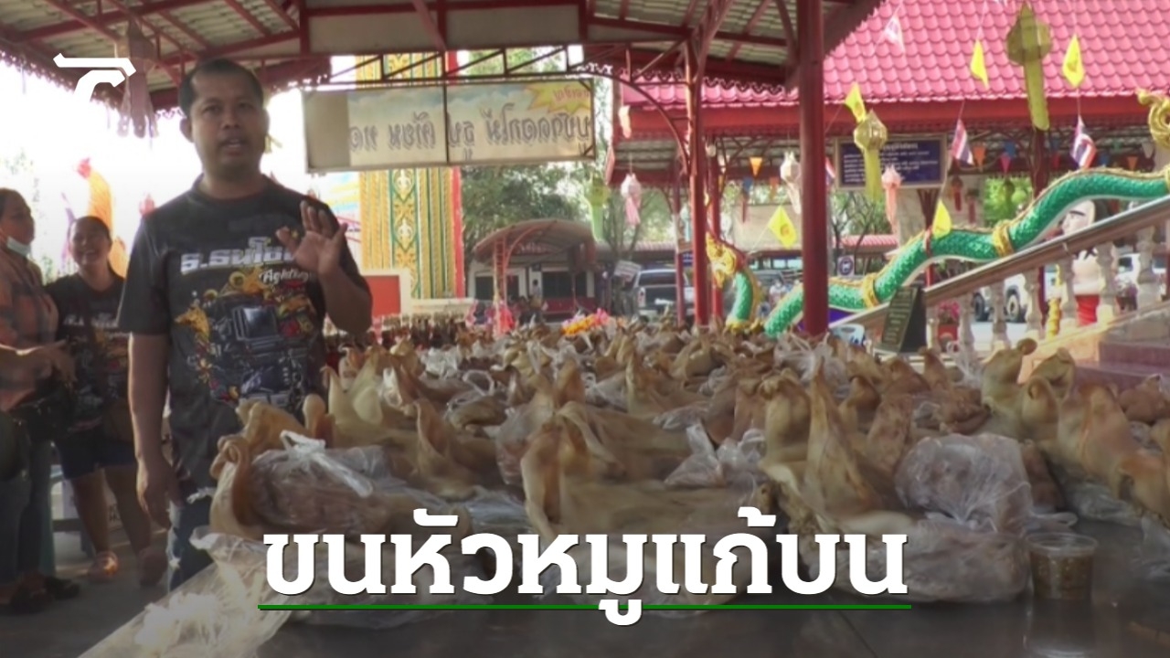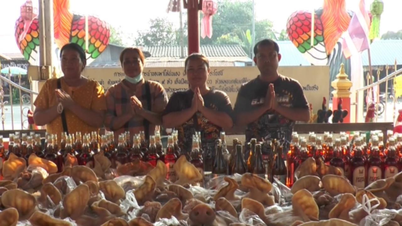 ขณะที่หัวหมูจำนวน 100 หัว ได้มีการแจกจ่ายให้กับชาวบ้านที่เดินทางมาไหว้หลวงพ่อเคลือบ และบางส่วนจะนำไปให้คนยากจนด้วย.