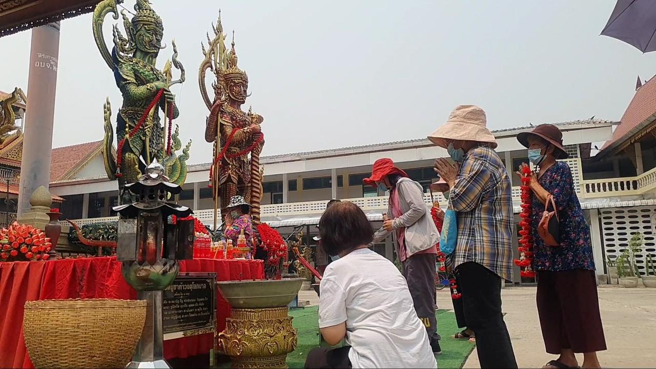 คอหวยแห่เข้าวัดขอโชค "ท้าวเวสสุวรรณ" วัดบุญเกิด จ.พะเยา หลังให้โชค 3 งวดติด ไม่ผิดหวังล้วงไข่ไหมงคลได้ "เลขเด็ด" สมใจ หวังนำไปเป็นแนวทางลุ้นโชคงวด 16/4/66