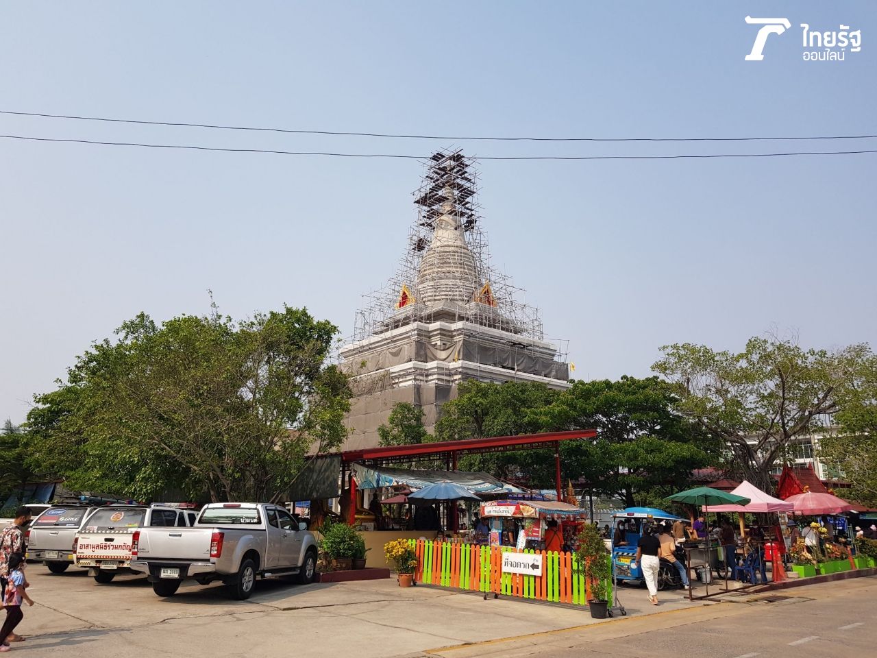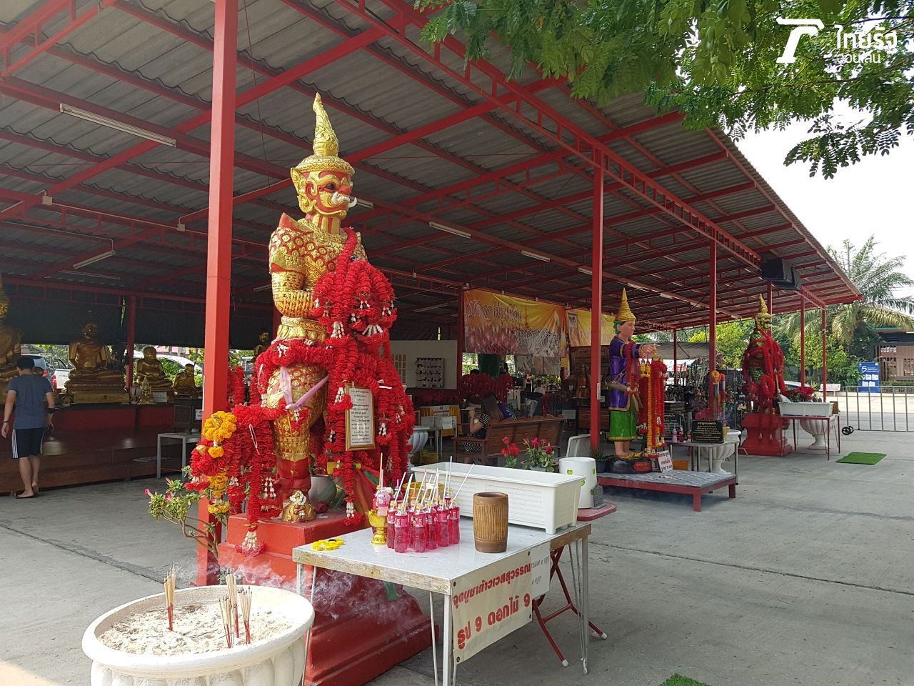 ภายในวัดค่อนข้างร่มรื่น ซึ่งหลังจาก "หญิง" ได้ก่อเจดีย์ทราย สรงน้ำพระเรียบร้อยแล้ว ก็ได้ไปขอโชคกับ "ท้าวเวสสุวรรณคู่" ที่อยู่ใกล้กับมหาเจดีย์ที่ขณะนี้อยู่ระหว่างการก่อสร้าง