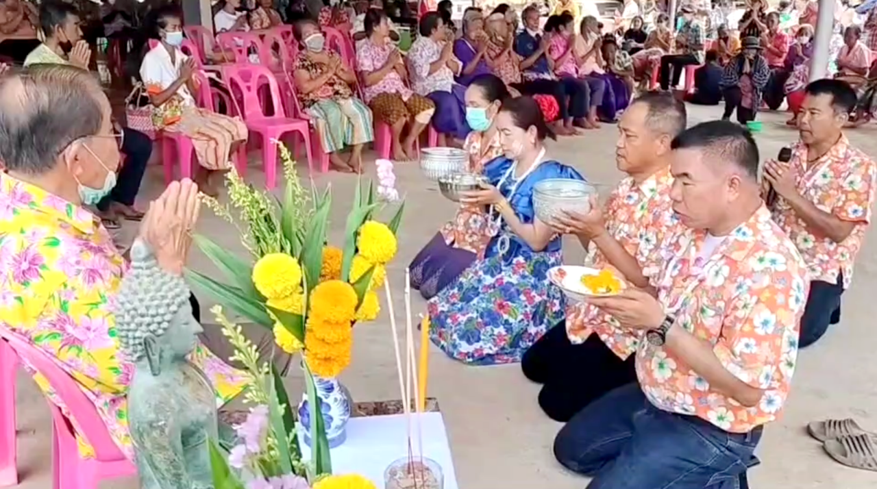 นายชูเดช นาบุญเรือง ผู้ใหญ่บ้านหมู่ที่ 8 เปิดเผยว่า ตนเป็นคนที่ชอบเสี่ยงโชคอยู่แล้ว จึงมาขอกับต้นตะเคียนที่อยู่ที่ศาลากลางบ้าน และก็ได้โชคทุกครั้ง รวม 7 งวด ได้หลายแสนแต่ไม่เคยบอกใคร วันนี้เป็นวันสงกรานต์ตนจึงถือโอกาส แก้บนแม่ตะเคียน ด้วยการจัดหมอรำซิ่งตามสัญญา พร้อมจัดให้รดน้ำดำหัวให้กับผู้สูงอายุ เพื่อให้ผู้สูงอายุคนเฒ่าคนแก่ชมหมอลำ และร่วมสนุกในวันสงกรานต์ ซึ่งถือว่าเป็นวันดีของคนไทยวันขึ้นปีใหม่