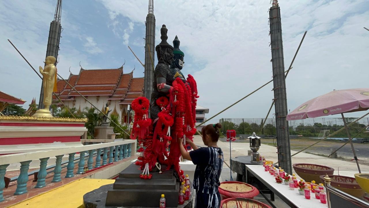ทั้งนี้พบว่า นางสาวมาลิน แก่นแก้ว ชาวบ้านคลอง 12 ลำลูกกา สาวดวงเฮงได้นำเครื่องเซ่นไหว้นำมาแก้บน "ท้าวเวสสุวรรณ" วัดมงคลรัตน์