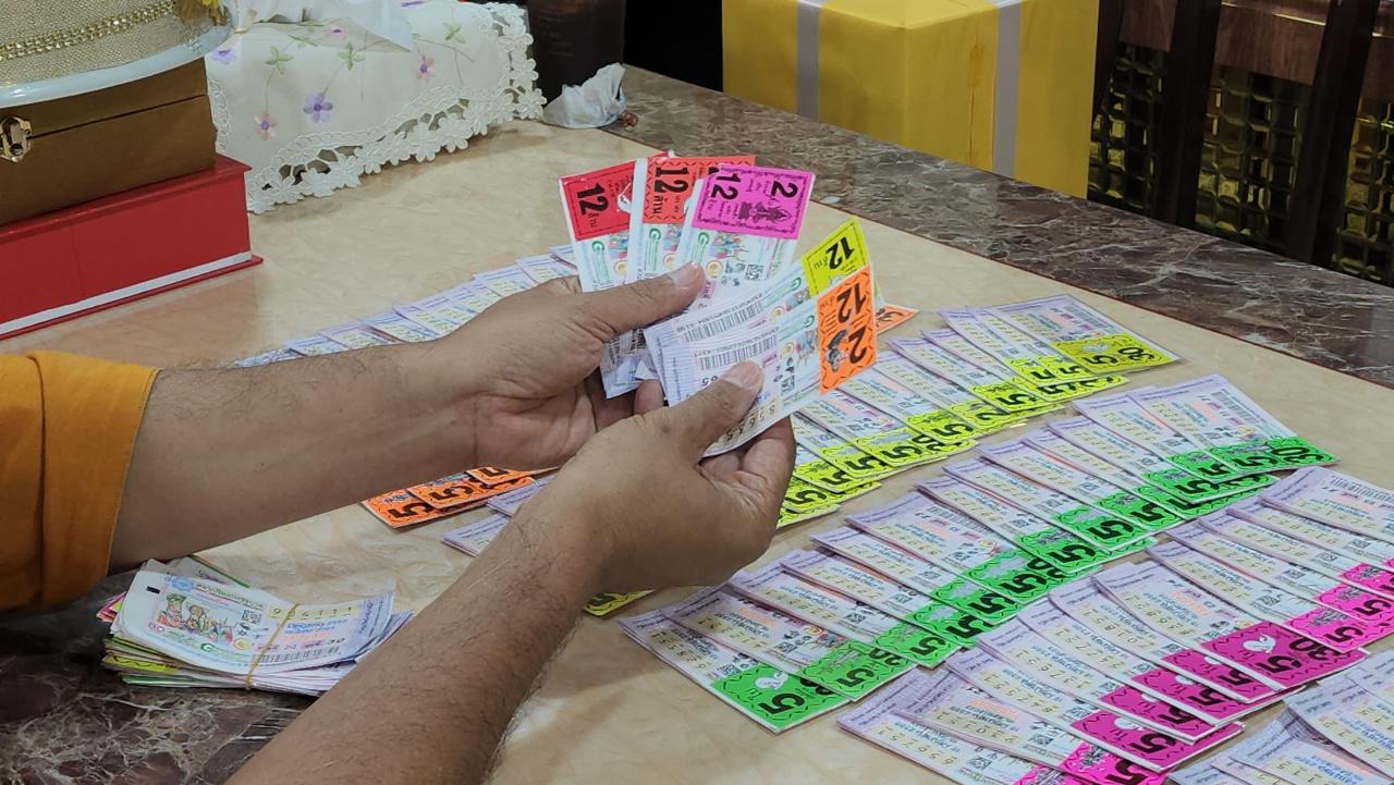 หาซื้อแทบไม่ได้แล้ว สาธุชนกว้านซื้อลอตเตอรี่ "เลขดัง" "เลขมงคล" ถวายหลวงพี่น้ำฝน เจ้าอาวาสวัดไผ่ล้อม กว่า 400 ใบ หวังถูกรางวัลจะได้นำเงินไปจัดซื้อเครื่องมือแพทย์และช่วยเหลือคนยากจน