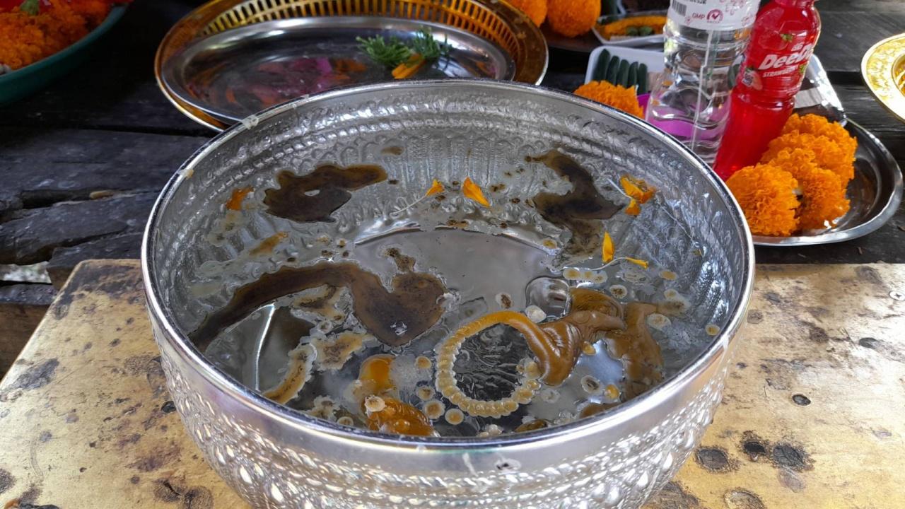 ด้าน นายนั่น พ่อค้าจำหน่ายปลา บอกว่า ตัวเองมีความเชื่อเรื่องงูเหลือมพ่อปู่แม่ย่าจะมาหาตนทุกปี เพื่อมาให้โชคลาภ