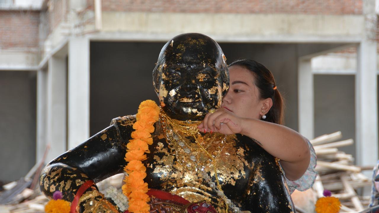 ซึ่งมีทั้งคนที่มากระซิบขอพร และคนที่นำสร้อยคอทองมาสวมใส่ให้พ่อขุนช้าง หลังได้โชคสมหวังในงวดที่ผ่านมา นอกจากนี้ยังพบว่ามีผู้มีจิตศรัทธาจำนวนหนึ่ง กำลังรอคิวให้หลวงปู่ดุสิต สุจินโณ เจิมฝ่ามือ นะดวงดีมหาเศรษฐี เพื่อเสริมสิริมงคลอีกด้วย