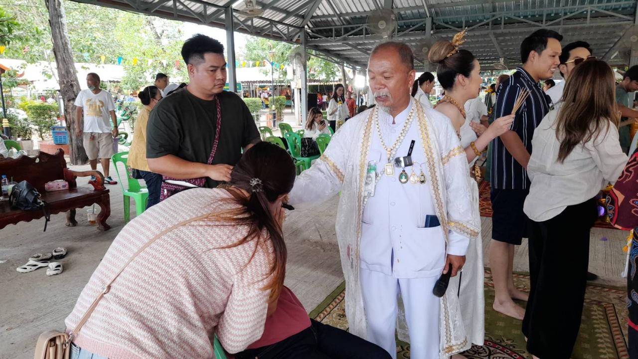 ทั้งนี้ ที่ลานบวงสรวงหน้าเกาะ มีคนเดินทางมาทำพิธีบวงสรวงเปิดทรัพย์รับโชค รวมถึงแก้บน โดยมี พ่อจ้ำชวการ คำวันสา เป็นผู้นำทำพิธี ซึ่งในขณะที่ทุกคนร่วมพิธีบวงสรวงแก้บนอยู่นั้น พบว่าคนที่เข้าร่วมพิธีคนหนึ่งมีอาการผิดปกติ แน่นหน้าอก ก่อนทรุดลงกับพื้น ญาติต้องรีบปฐมพยาบาล