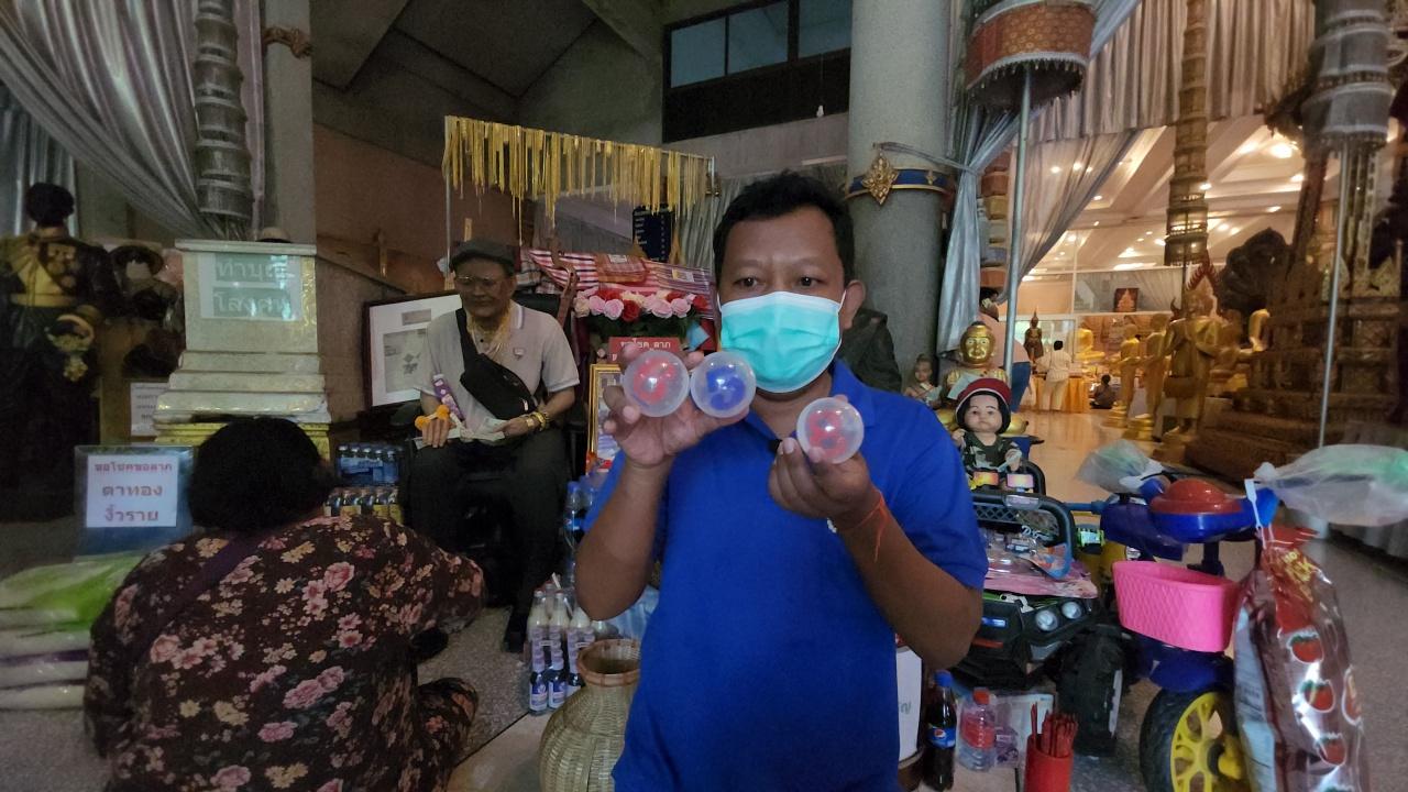 หนึ่งในนั้น คือ นายสุริยา นิลน้อย อายุ 43 ปี ชาวสมุทรสาคร ทำอาชีพขับรถแท็กซี่ เปิดเผยว่า ตนเป็นหนึ่งในผู้ที่เป็นนักแสวงโชค ที่จะเดินทางไปหาเลขเด็ด ในช่วงก่อนหวยออก รอบก่อนตนได้มากราบขอพรตาทองงิ้วราย กับเพื่อนสองคน อธิษฐานขอให้ได้โชคถูกหวย 2 ตัว แล้วจะพาครอบครัวมาทำบุญ ปรากฏว่าถูกหวยจากเลขไข่เสี่ยงทาย ที่ล้วงได้ในไห รับทรัพย์ไป 1.2 หมื่นบาท