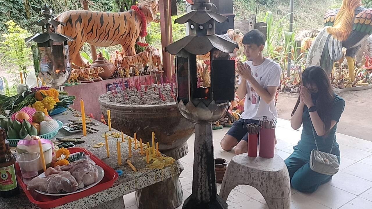 โดยจุดธูปเสี่ยงทายได้เลขเด็ด 095 รวมถึงล้วงไหได้ 402 ขณะที่บางคนส่องเห็นตัวเลขที่ปากรูปปั้นเสือ ตีเป็นเลข 537 ก่อนจะพากันถ่ายรูปเก็บไว้ไปเสี่ยงโชคงวดวันที่ 31 กรกฎาคม 2566.