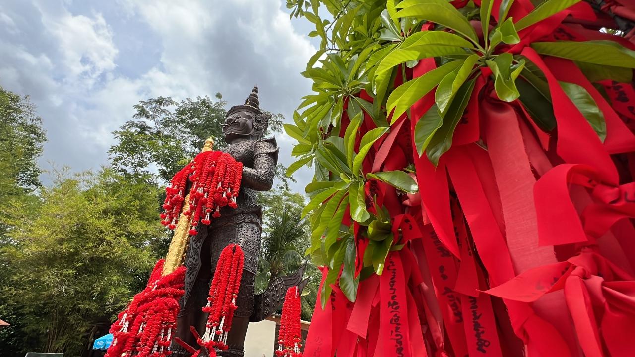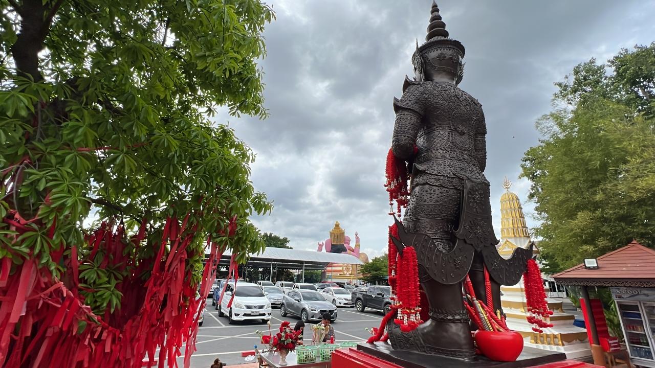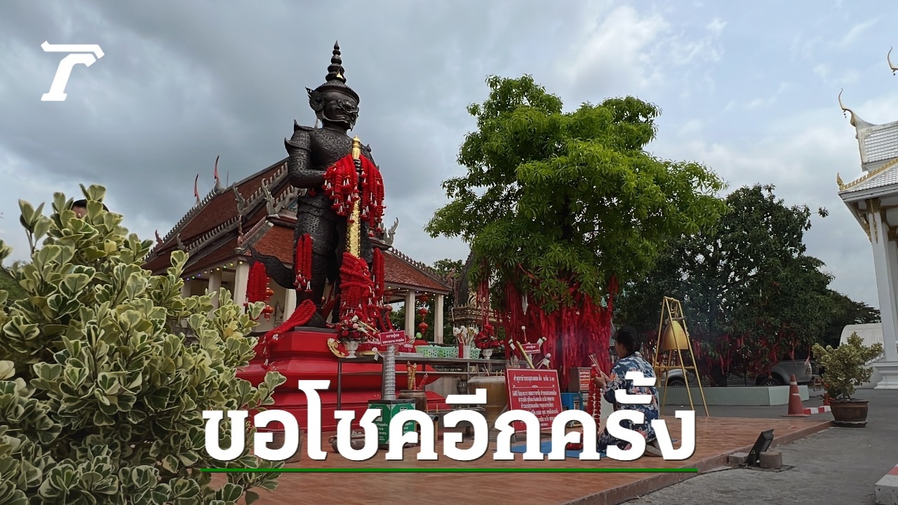 สามีภรรยามาแก้บน "ท้าวเวสสุวรรณตะบองทอง" ที่วัดสมานรัตนาราม หลังถูกรางวัลลอตเตอรี่ งวดนี้ไม่พลาดจุดธูปมงคลขอ "เลขเด็ด" อีกครั้ง ด้านเพื่อนบ้านขอให้ไลฟ์สด หวังร่วมลุ้นด้วย