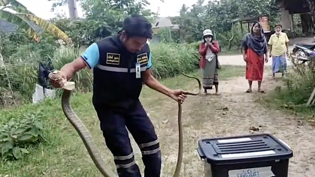 วันที่ 25 สิงหาคม 2566 ผู้สื่อข่าวรายงานว่า นายทวีศักดิ์ บุญเศษ เจ้าหน้าที่อสรพิษวิทยาภาคใต้ เขต จ.สงขลา ได้รับแจ้งขอความช่วยเหลือจาก นายวิเชียร เพ็งเกตุ ให้จับงูจงอางมานอนขดตัวอยู่ภายในโรงรถ จึงรับนำอุปกรณ์ในการจับสัตว์เลื้อยคลานรุดเข้าตรวจสอบทันที ที่บ้านเลขที่ 38 ม.4 ต.ทับช้าง อ.นาทวี จ.สงขลา