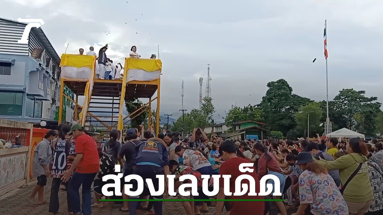 นักเสี่ยงโชค ลุ้น "เลขเด็ด" ปลายประทัดมงคล ในงานทิ้งกระจาดศาลเจ้าพ่อบ่อไร่ อ.บ่อไร่ จ.ตราด หวังนำไปเป็นแนวทางลุ้นโชคงวดนี้ 1/9/66