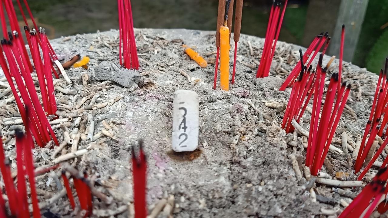 จากนั้นจุดธูปขอเลขเด็ด กับเจ้าแม่ตะเคียนทอง ปรากฏเป็นเลข 542 ซึ่งเป็นเลขที่ชอบอยู่ในใจ และบังเอิญไปตรงกับเลขท้ายลอตเตอรี่ของพี่สะใภ้ ที่ซื้อทางออนไลน์ไว้ก่อนหน้านี้รวม 5 ใบ ทำให้ตนและญาติพากันขนลุก