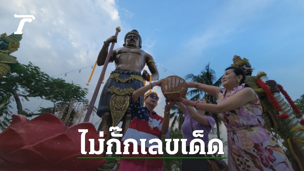 หลังจากที่ อาจารย์เบโอมมาศ์ตรา, น.ส.แบม และอาจารย์วันชัย ทำพิธีแล้ว ได้เดินไปที่ทุ่งบัวแดง เพื่อจุดธูป 16 ดอก ไหว้ขอพร ท้าวหิรัญพนาสูรองค์ใหญ่ที่สุดในประเทศไทย ที่ทางวัดเพิ่งนำมาประดิษฐานตามความเชื่อ