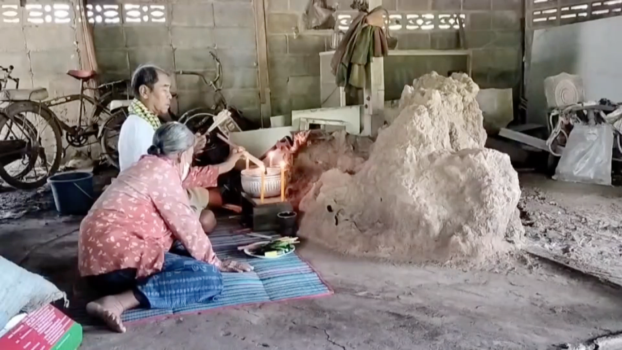 ชาวบ้านแห่ส่อง "เลขเด็ดงวดนี้" จากขันน้ำมนต์ "พญาจอมปลวก" โผล่ตรงศาลกลางบ้าน เชื่อให้โชคมาแล้วหลายงวด